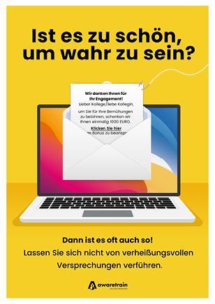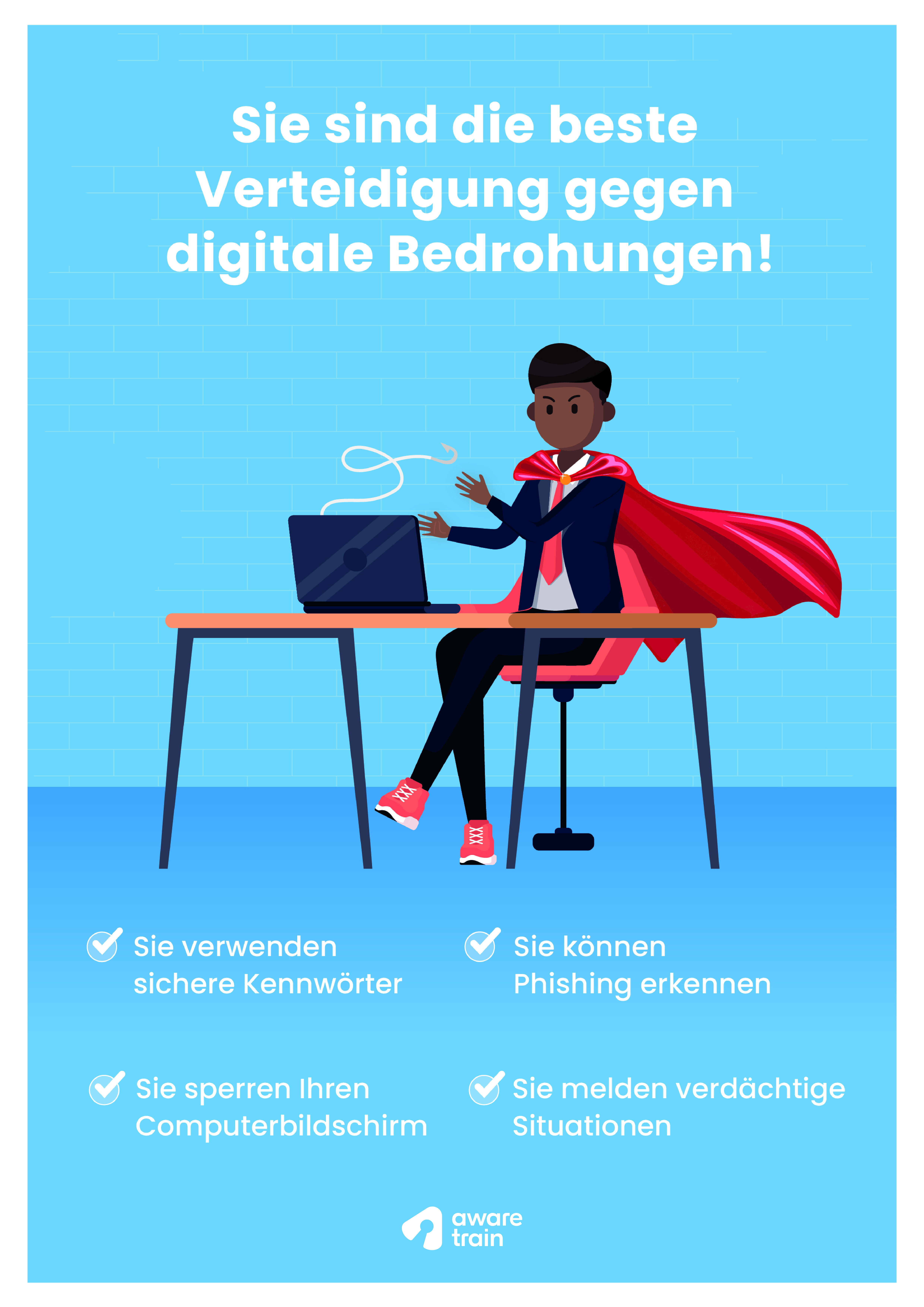 Laden Sie unsere kostenlosen Security Awareness Poster und Cartoons zu Themen wie Datenschutz, Passwörter, Phishing, sicheres Arbeiten und vielem mehr herunter. Nutze sie in deiner digitalen Kommunikation oder drucke sie aus, um sie im Büro sichtbar aufzuhängen.